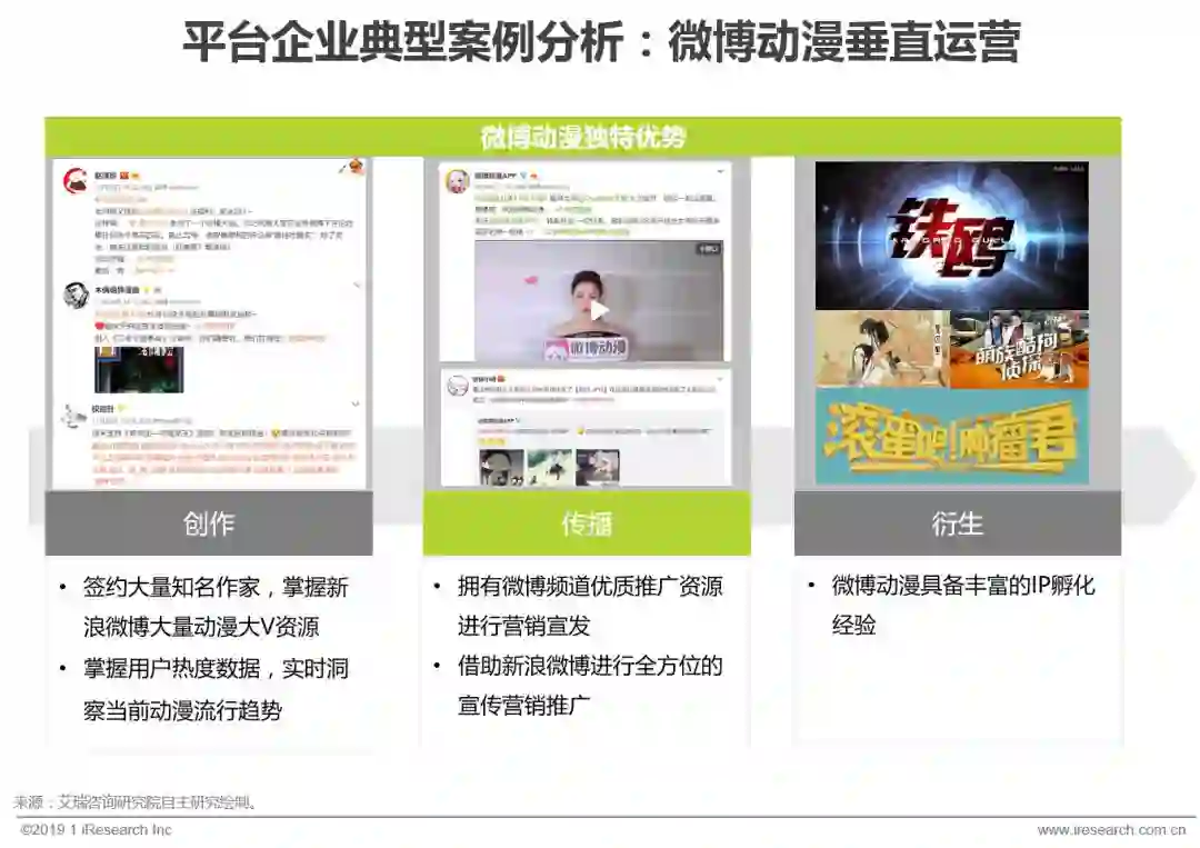 “微博动漫”作为新浪微博旗下的动漫运营主体,负责整个微博的动漫内容运营和大V资源管理,目前已与近12000个动漫大V建立了良好合作关系,覆盖到上亿泛二次元用户,上千万核心二次元用户。依托于新浪微博庞大的用户流量和内部各体系的支持,微博动漫在动漫IP资源孵化业务上优势显著。