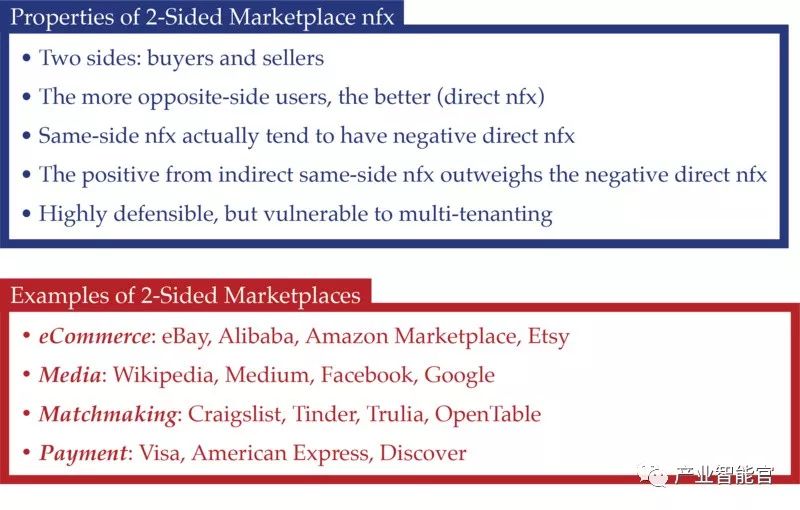 双边网络中新增的供应侧用户可直接增加需求侧用户的价值相对容易看得明白,反之亦然。比方说,像eBay这样的双边市场的每一位新卖家(供应侧)就可以直接为买家(需求侧用户)增加价值,因为它增加了供应以及商品的多样性。类似地,每一位新增买家对于卖家来说都是新的潜在客户。