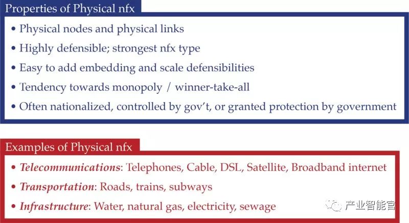 物理直接网络效应是与物理节点(比如电话或分线盒)和物理链路(如地下的线路)相关联的直接网络效应。这属于防御性最强的网络效应,因为它不仅具备直接网络效应,而且也有助于增加其他的防御性;比如规模效应和植入。跟具备物理网络效应的公司竞争需要进行资金与物理约束大规模的预先投资。