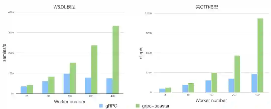 针对原生 TensorFlow 中进行超大规模稀疏训练时分布式扩展性不足的问题,Alibaba PAI 团队为 TensorFlow 社区贡献了 grpc+seastar 及 FuseRecv 两个功能。在一些典型的业务场景下,大大提升了稀疏模型训练的分布式扩展性。TensorFlow 社区内部分同学试用了这两个功能,在 400 worker 规模下能够提升 2-4 倍。