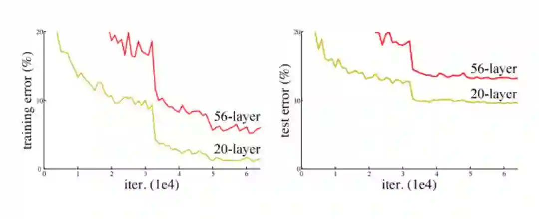 但是,网络的深度提升不能通过层与层的简单堆叠来实现。由于臭名昭著的梯度消失问题,深层网络很难训练。因为梯度反向传播到前面的层,重复相乘可能使梯度无穷小。结果就是,随着网络的层数更深,其性能趋于饱和,甚至开始迅速下降。