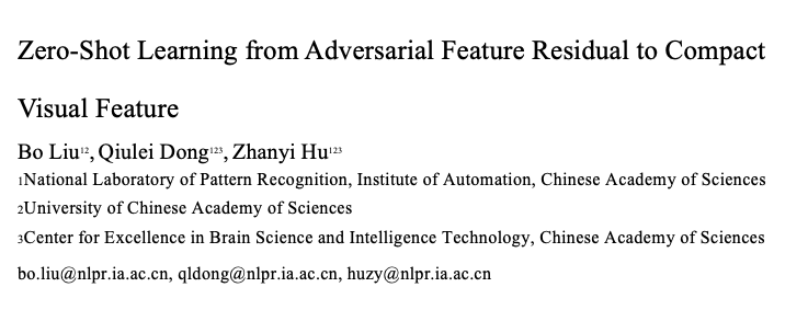 本文对中科院自动化所胡占义团队完成,被AAAI-20录用的论文《Zero-Shot Learning from Adversarial FeatureResidual to Compact Visual Feature》进行解读。