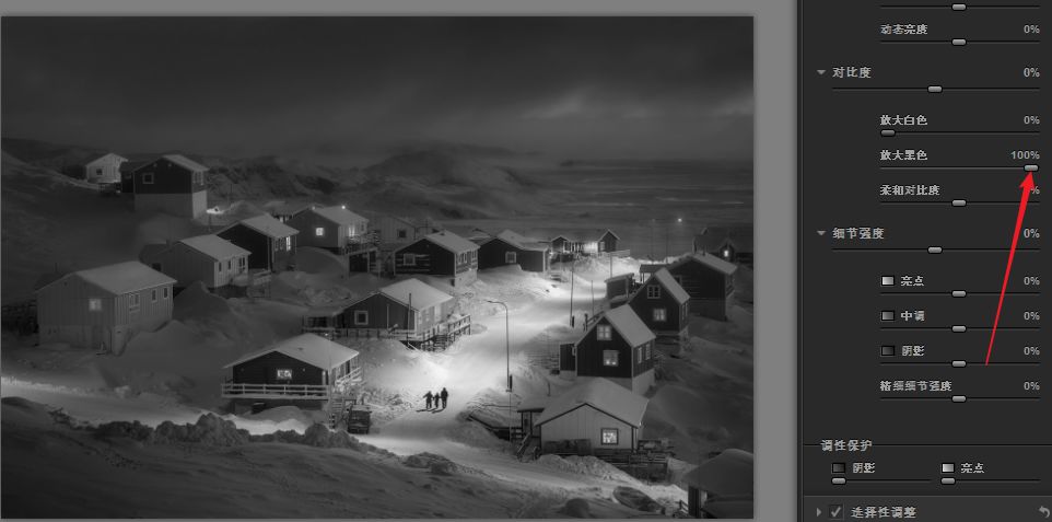 ”放大黑色“滑块同理,右移此滑块,可以在压暗照片的同时,保护画面的暗部细节和整体对比度,非常智能好用。大家可以首选这个滑块来压暗照片。