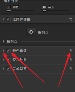 点击最右侧的“撤回箭头”图标,可以重置该板块的调整,即所有板块内的参数还原成默认值。