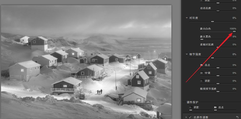 接下来的”放大白色“和”放大黑色“两个分滑块,有非常智能的提亮和压暗照片的作用。