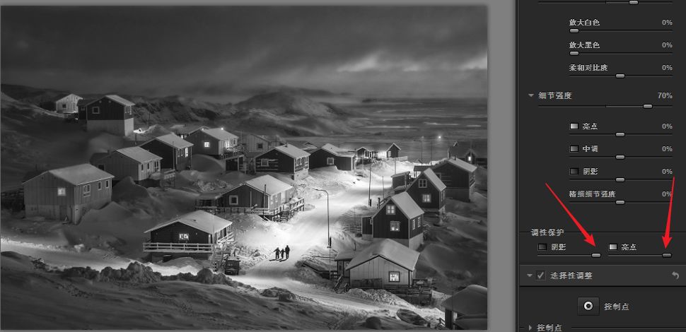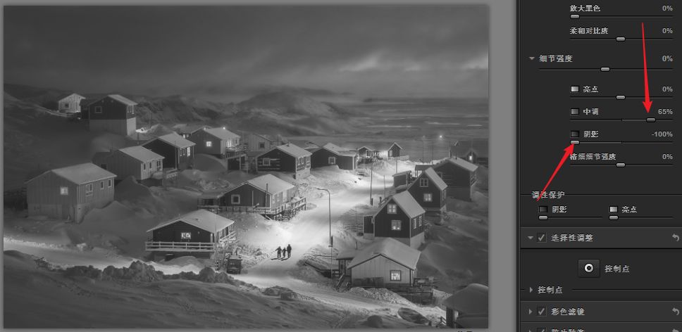 以上就是后期黑白处理中,最为重要的“调整所有”和“选择性调整”板块。