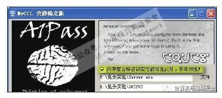关于MyCCL就先介绍到这里,由于MyCCL存在后缀名Bug问题,所以不能生成带有后缀名的文件,但是现在的大多数反病毒软件都已经不查杀无后缀的脚本木马了,所以需要用一款工具来辅助完成任务。
