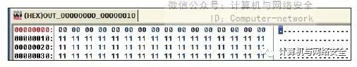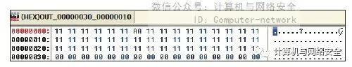 当我们用CCL定位特征码时,它会从区段头部开始填充“00”数据,因为“00”往往都表示“此处为空”,所以如果将某一段数据替换为“00”,也就相当于删除了这段数据。为了让演示效果更加明显,这里将整个文件作为一个区段来定位。现在来看看CCL生成的第一个无后缀文件OUT_00000000_00000010,如图6所示。不难发现,第一行已经被无意义的“00”给填充了,我们假设的特征码"AA"现在已经不存在了,很显然这个文件是不会被反病毒软件查杀的。