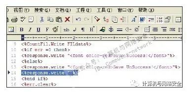 下面为您简单介绍一下黑客的脚本木马花指令免杀方法。花指令本是软件安全领域早期的一种代码保护技术。脚本木马的花指令免杀操作起来特别简单,只需在如图4所示的第13行代码的下面添加一句"<%response.write""%>"代码即可。现在再用杀毒软件查杀后发现已经躲过了检测。