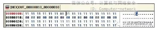 我们发现由于填充的部位变成了第2行,所以特征码"AA"这时又暴露出来,因此这个文件肯定会被反病毒软件查杀。再来看第三个文件OUT_00000020_00000010,如图8所示。