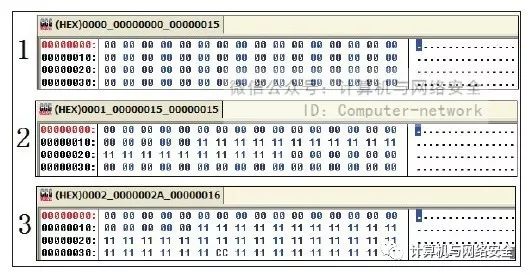 这次MyCCL采用的方式有些特别,它首先默认上次生成的第一个文件中有特征码,也就是说MyCCL先默认第一个文件暴露的那块数据中含有特征码,所以这次它生成的3个文件都不含有这一块数据,而是直接从第二块数据开始暴露。