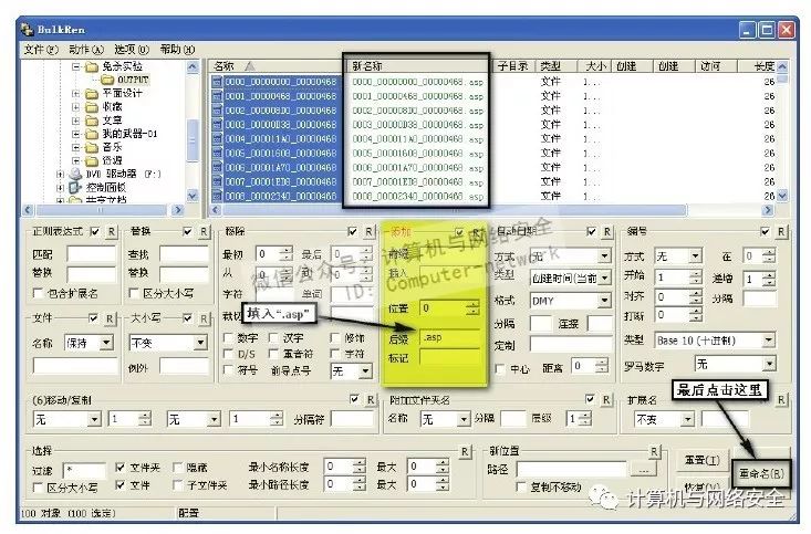 然后在“添加”框架内的“后缀名”里填入.asp,如图25所示。最后单击右下角的“重命名”按钮即可。