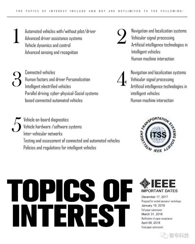 第29届国际智能车大会(IV ' 18)是由IEEE智能交通系统协会(ITSS)主办的年度技术论坛。旨在为智能汽车领域的全球研究人员和技术从业人员分享和讨论智能汽车相关的理论和最新的技术进展。欢迎投稿有关智能车辆方面的文章,以及关于研讨会和辅助会议的建议。
