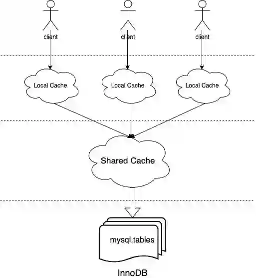 class Shared_dictionary_cache {Shared_multi_map<Abstract_table> m_abstract_table_map;Shared_multi_map<Charset> m_charset_map;Shared_multi_map<Collation> m_collation_map;Shared_multi_map<Column_statistics> m_column_stat_map;Shared_multi_map<Event> m_event_map;Shared_multi_map<Resource_group> m_resource_group_map;Shared_multi_map<Routine> m_routine_map;Shared_multi_map<Schema> m_schema_map;Shared_multi_map<Spatial_reference_system> m_spatial_reference_system_map;Shared_multi_map<Tablespace> m_tablespace_map;};template <typename T>class Shared_multi_map : public Multi_map_base<T> {private:static const size_t initial_capacity = 256;mysql_mutex_t m_lock; // Single mutex to lock the map.mysql_cond_t m_miss_handled; // Broadcast a miss being handled.Free_list<Cache_element<T>> m_free_list; // Free list.std::vector<Cache_element<T> *>m_element_pool; // Pool of allocated elements.size_t m_capacity; // Total capacity, i.e., if the// number of elements exceeds this// limit, shrink the free list.}