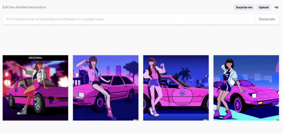 Dall-E软件不知道汽车的确切型号(可能AMi款还比较新)。人物还可以,但不太逼真。而每次获得相同的构图几乎是不可能的。我还意识到,忘了提及许多对设计师来说似乎很直观的细节,比如让人物微笑,让他们目视前方,由女人驾驶,人物要系上安全带等等...