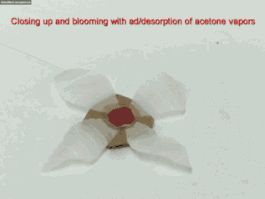 智能薄膜定向卷曲,模拟花朵运动及在溶剂氛围中的持久运动(由上至下)