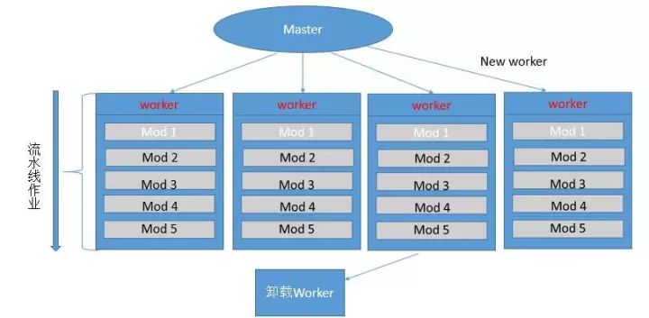那当 worker 被启动之后,也只是负责一些 Web 最简单的工作,而其他的工作都是由 worker 中调用的模块来实现的。