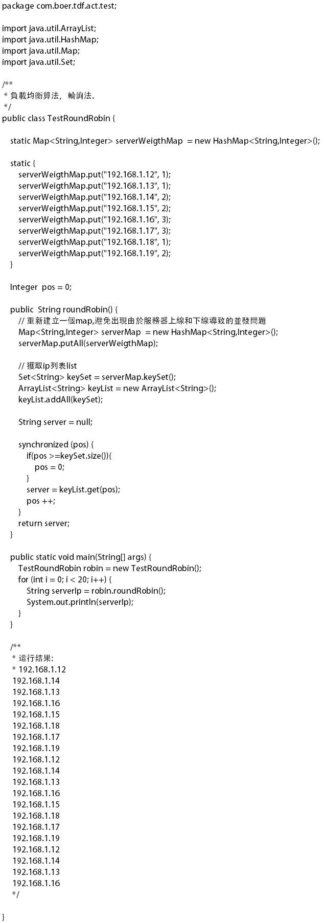 以轮询的方式依次请求调度不同的服务器;实现时,一般为服务器带上权重,这样有两个好处: