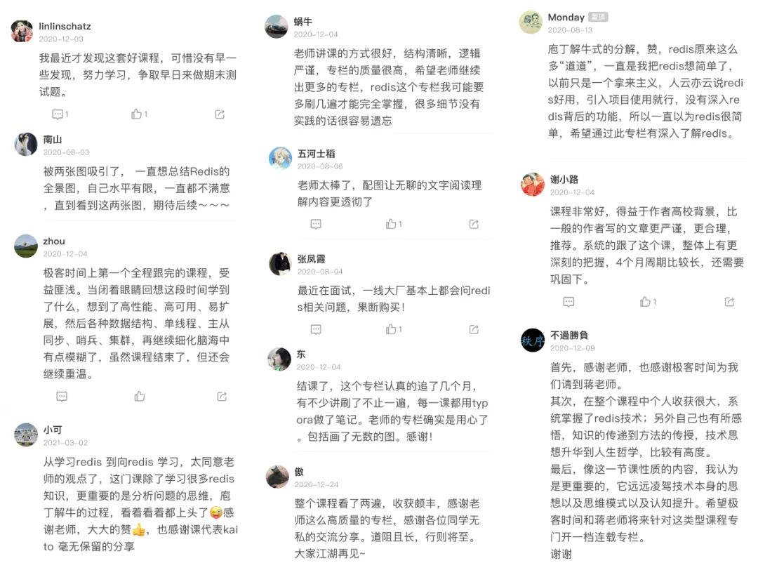 去年,订阅了他的专栏 《Redis 核心技术与实战》,追着更新看了一遍,今年抽空又二刷了,不仅原理讲得透彻,实战性也强。很多问题之前没有深入思考过,跟着专栏敲代码测试和分析了源码细节,让我对 Redis 有了更深入的理解。发文前看了下,订阅已经 21,000+ 了。