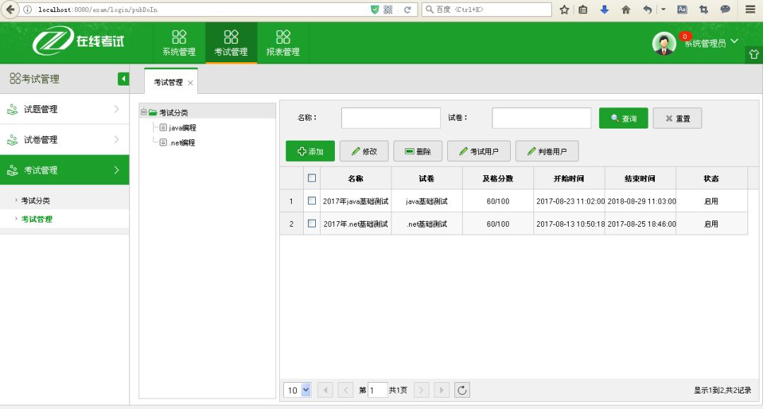 2. 项目名称:在线考试系统 Exam