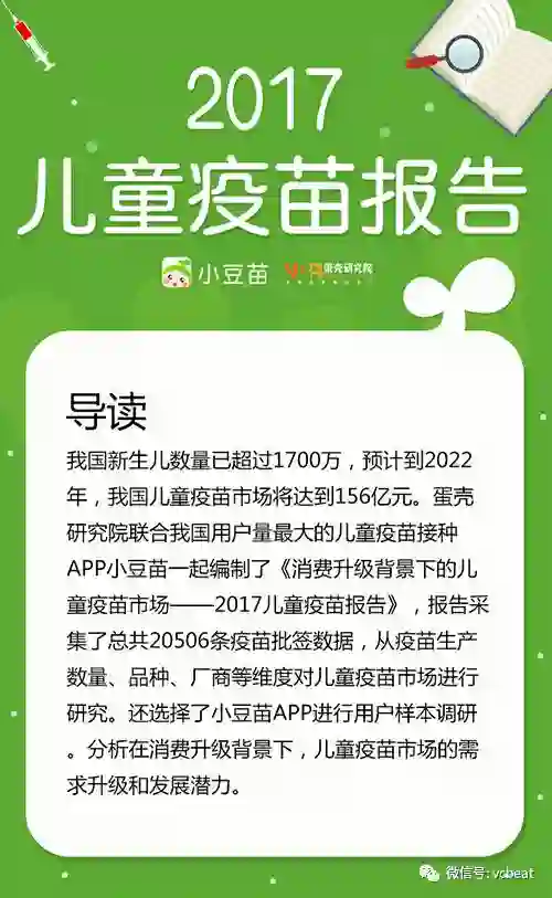在儿童疫苗市场逐步活跃之际,蛋壳研究院同小豆苗APP一起联合编制了《消费升级背景下的儿童疫苗市场——2017儿童疫苗报告》。