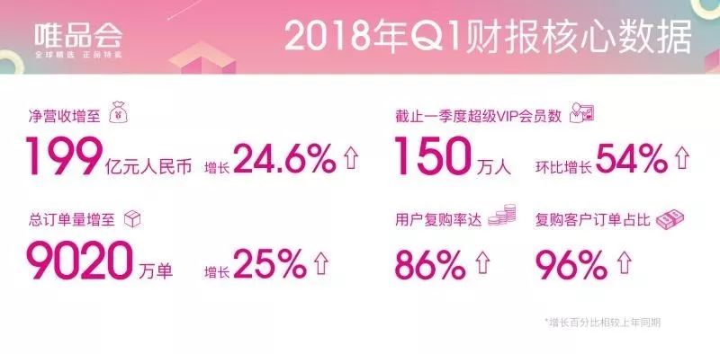 财报显示,唯品会一季度人均消费同比增长25%;人均订单同比增长25%;用户复购率为86%,高于去年同期的77%,96%的订单是重复客户所购买。截止一季度,超级VIP会员数环比增长54%。