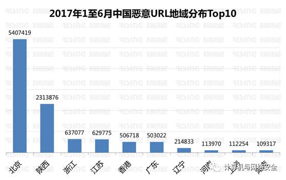 报告期内,北京市恶意网址(URL)总量为541万个,位列全国第一,其次是陕西省231万个,以及浙江省64万个,分别为二、三位。