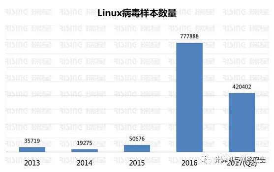 近期,瑞星联合国家信息中心信息与网络安全部发布了《2017年上半年中国网络安全报告》,报告显示2017年1至6月,瑞星“云安全”系统共截获Linux病毒样本总量42万个,远远超过了2013年、2014年和2015年的总和。针对Linux系统的勒索软件数量也开始上升,虽然数量远远不及Windows平台,但造成的损失将会非常惨重。