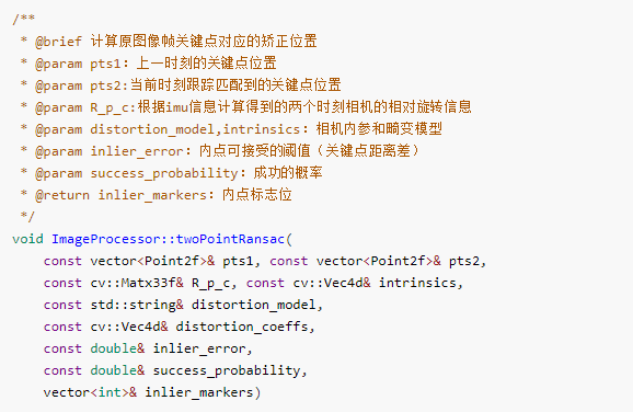 整个流程还算比较清晰,但是有一个步骤需要单独说明一下,也就是作者在论文中提到的twoPointRansac的方法.我们先来看一下函数原型: