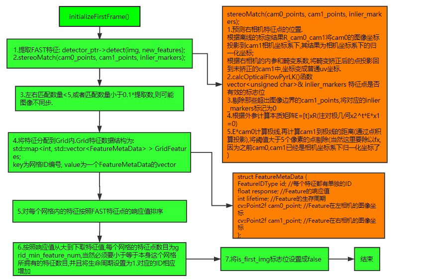 本文主要针对2017年Kumar实验室开源的S-MSCKF进行详细分析,其实这篇文章整体思路与07年提出的基本上是一脉相承的.作为一个VIO的前端,MSCKF采用的是光流跟踪特征点的方法,特征点使用的是FAST特征,另外这是MSCKF双目的一个实现,双目之间的特征点匹配采用的也是光流,这与传统的基于descriptor匹配的方法不同.前端部分其实相对简单,整个前端部分基本在 image_processor.cpp中实现.