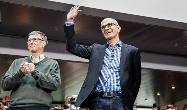 图:萨蒂亚·纳德拉与微软前CEO比尔·盖茨