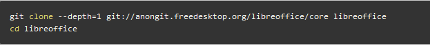 记得加上 --depth=1 参数,因为 libreoffice 项目比较大,进行全量克隆会比较费时间,对于编译来说 git 提交历史没有意义。