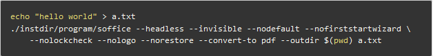 使用如下命令,测试一下编译出来的 soffice 是否能正常将 txt 文件转换成 pdf 文件。
