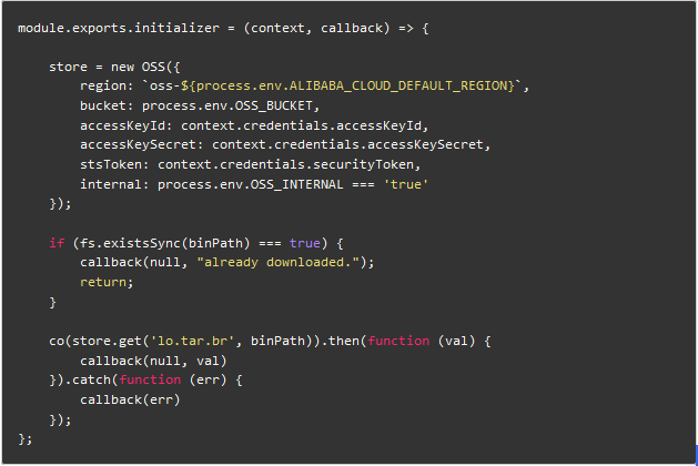 借助 OSS 运行时下载解压,以绕过 zip 程序包 50M 的限制;