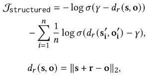 其中(𝑠′𝑖, 𝑟, 𝑜′𝑖)是负样本,𝛾是margin,𝜎指sigmoid函数,𝑑𝑟是评分函数。
