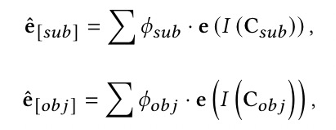 Type Marker 方法可以额外引入实体的类型信息以提高性能,但需要对类型信息进行额外注释,而实体类型标注在数据集中并不总是可用的。因此,我们通过特定关系中包含的先验知识而不是注释来获得潜在实体类型的范围。例如,给定关系“per:country_of_birth”,很明显与该关系匹配的头实体属于“人”,而与该关系匹配的尾实体属于“国家”。直观地说,我们根据关系类型分别估计在候选集𝐶𝑠𝑢𝑏和𝐶𝑜𝑏𝑗上的潜在实体类型对应的先验分布𝜙𝑠𝑢𝑏和𝜙𝑜𝑏𝑗,其中先验分布是通过频率统计来得到的。我们在实体周围分配虚拟类型词,这些词使用一组潜在实体类型的聚合嵌入进行初始化。由于初始化的虚拟类型词对于特定实体来说不是精确类型,这些可学习的虚拟类型词可以根据上下文动态调整,起到类弱化的Type Marker的作用。具体初始化方法如下: