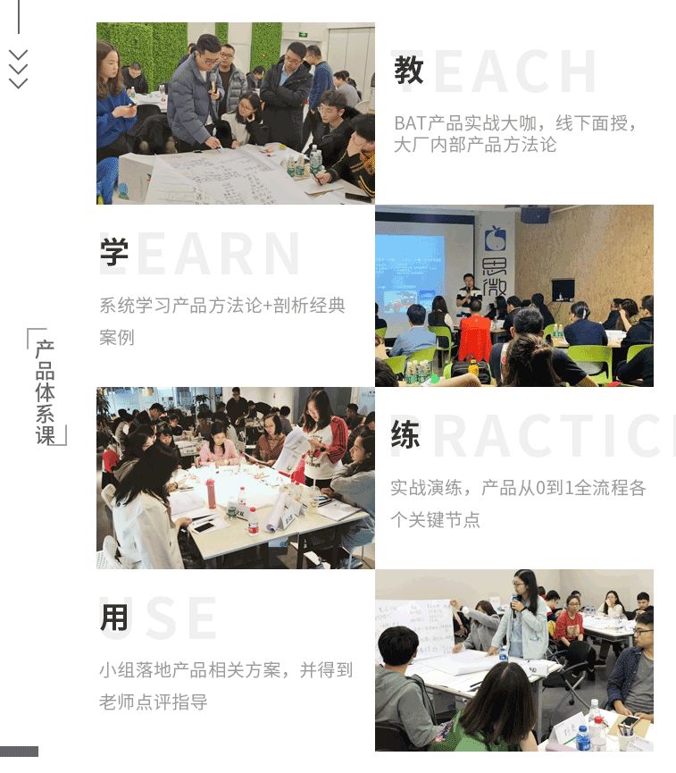 老师们均具有丰富产品经验,且在工作中不断实践,积累下来的方法论体系通过案例的方式去系统化的讲解,辅之大量的练习互动实战,让大家加深对做产品的理解及思考。