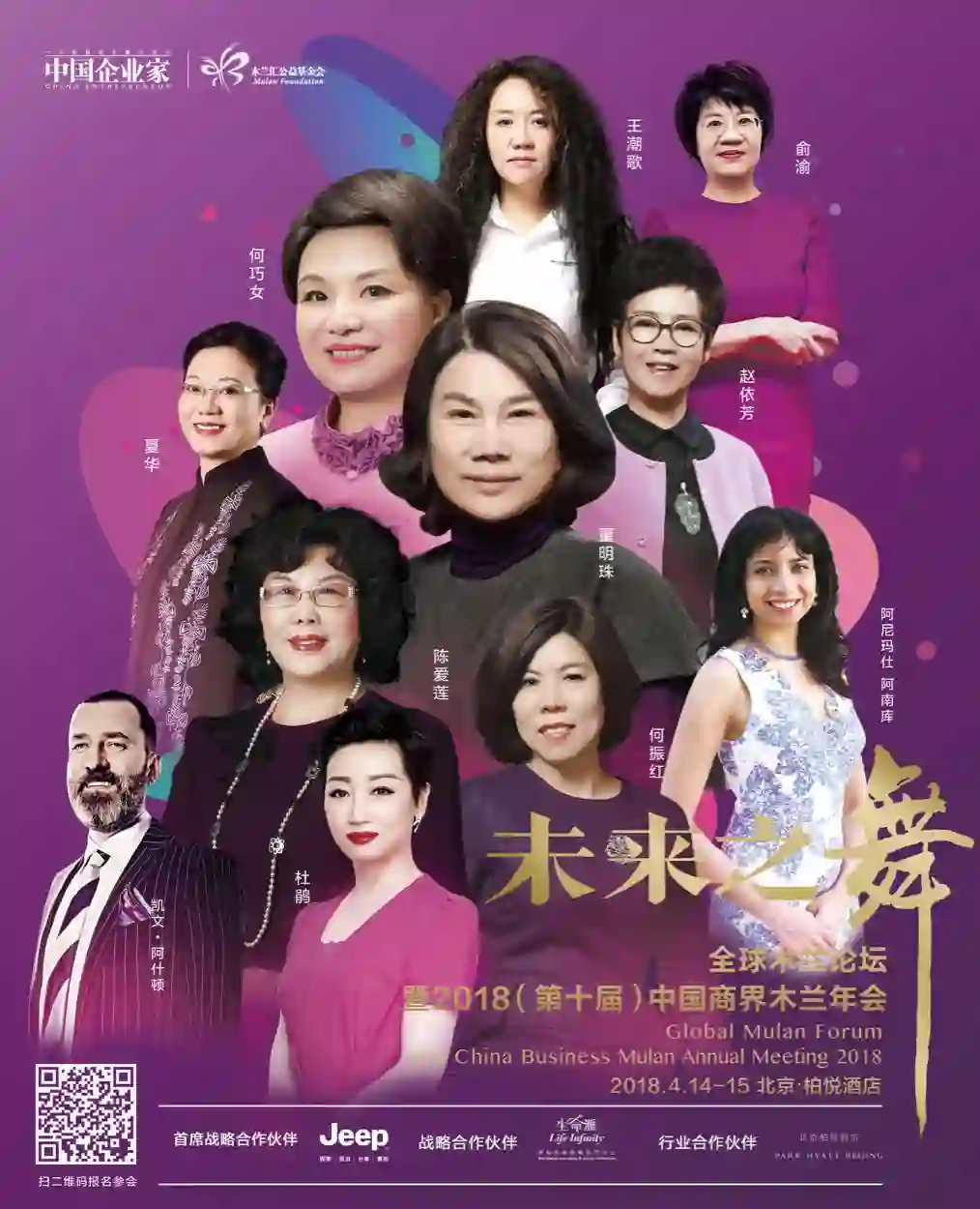 由《中国企业家》杂志社、木兰汇公益基金会联合主办的全球木兰论坛暨2018(第十届)中国商界木兰年会将于4月14日至15日在北京举行,董明珠、何巧女、陈爱莲、赵依芳、夏华、汪静波、俞渝、王潮歌、杜鹃以及物联网之父凯文•阿什顿、亚马逊AWS首席科学家Anima Anandkumar等已确认出席,点击下图报名参会。