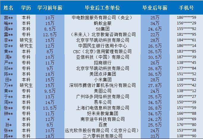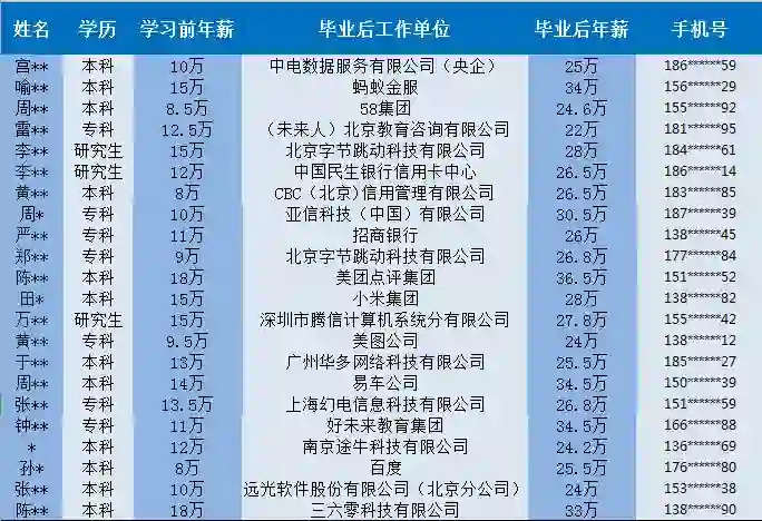 往期学员就业薪资部分展示
