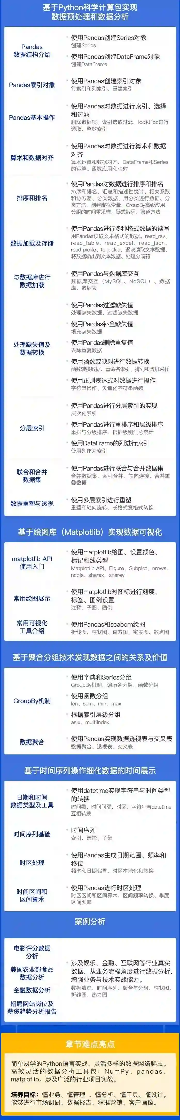 本课程是注重精而专的数据分析课程,一线企业用人需求,结合真实企业项目应用实用性强,无论你分析的数据规模有多大,均可从课程中找到思路甚至可直接复用的手段覆盖面广。