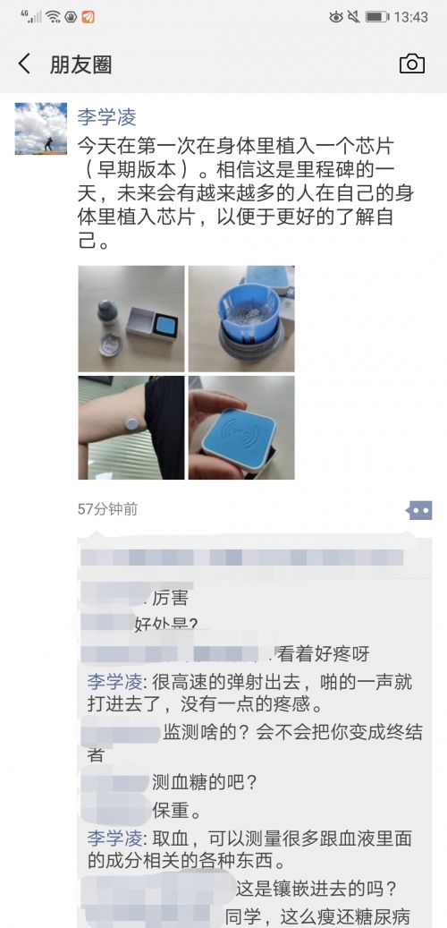 10月22日下午消息,欢聚时代(YY)联合创始人、董事长兼CEO李学凌在朋友圈晒出身体植入芯片的经历,并表示这样可以“更好地了解自己”。李学凌称,这是里程碑的一天,未来会有更多的人在身体里植入芯片。(新浪科技)