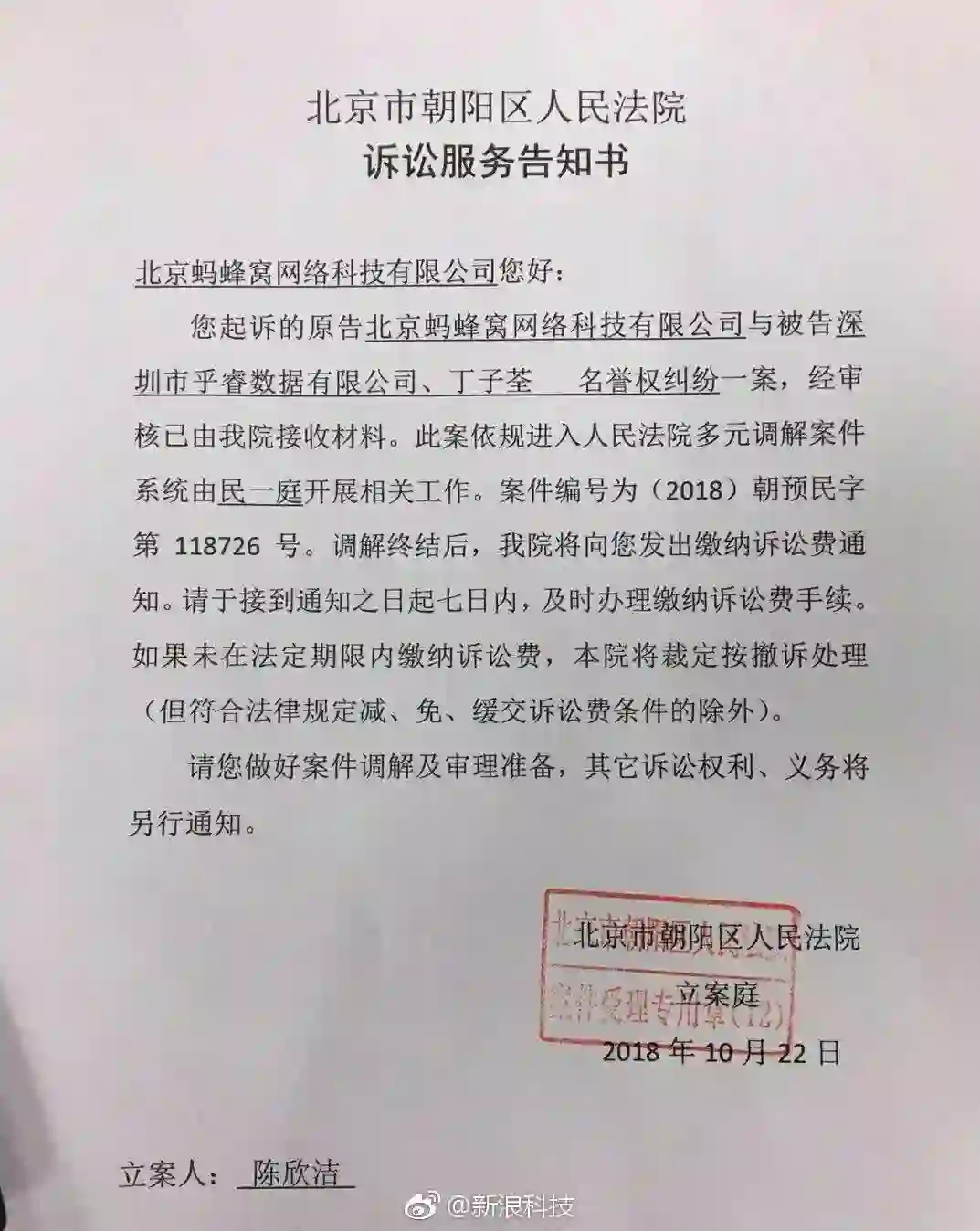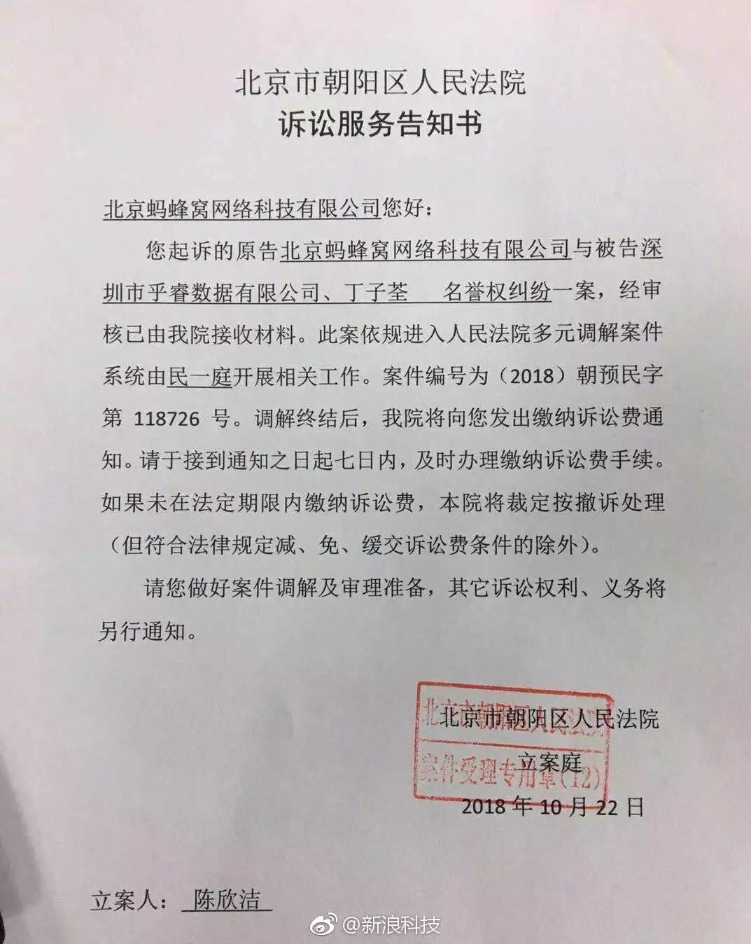 1.马蜂窝起诉深圳乎睿数据公司、丁子荃名誉侵权案获立案