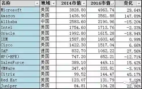 同时,云计算转身也不是无往不利的法宝,除了微软Azure和亚马逊AWS外,其他公司并没有获利太多。VWware受Dell并购EMC影响,市值还有所下降。未来的云计算市场,又将会是一个赢者通吃的市场。