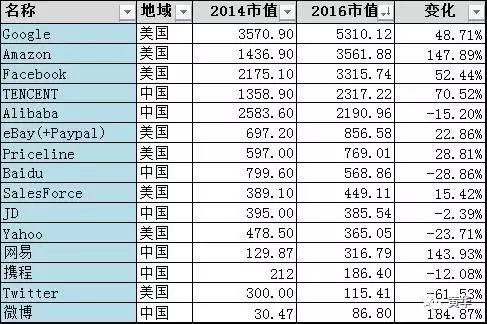 TOP互联网公司里面,美国8家、中国7家,中美两国统治整个互联网产业。美国公司统治是利用了创新和全球化的优势,而中国互联网公司的崛起却是占了地区保护主义的便宜。最悲催的是欧洲和日本,寸草不留。全球化好不好呢?