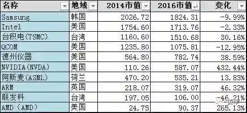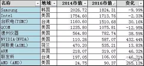 没有中国大陆公司入榜,这就可以理解为什么中国政府会那么捉急。为了避免脖子卡在别人的手里,中国政府这两年在半导体领域投资了几千亿人民币,同时还砸锅卖铁的在全球并购半导体企业,而美国对中国严防死守,一毛不拔。这是两个大国围绕着未来的战略之争,没有道理可言。