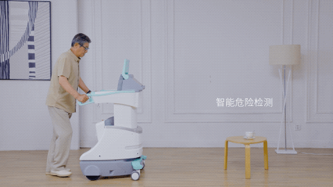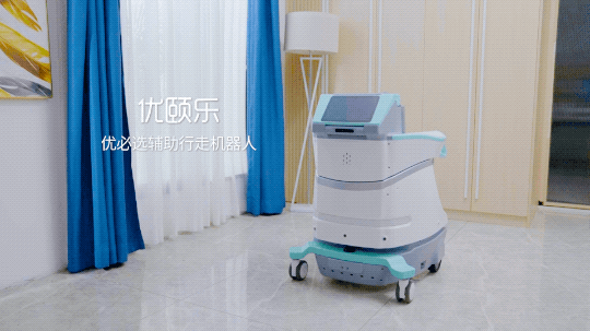 就像这样一台辅助行走机器人优颐乐,基于机器人和AI智能交互技术,它能自主前往任务地点,并实现2cm定位精度。