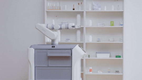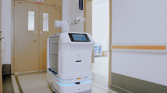 这还不算完,瞧瞧给大娘送药的“快递员”,机械臂都使上了。