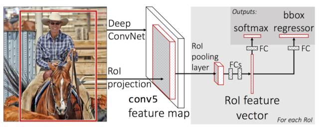 这样, 我们再来看RoI Pooling的使用, 那么RoI Pooling后面的FC层也要换成卷积层。  这样, 卷积层就被RoI Pooling层隔断了。 而且这种隔断使得RoI Pooling后面的ConvNet重复计算了。