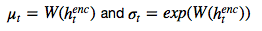 # map the RNN hidden state to latent variables with tf.variable_scope("mu", reuse=self.share_parameters): mu = dense(hidden_layer, self.n_hidden, self.n_z) with tf.variable_scope("sigma", reuse=self.share_parameters): logsigma = dense(hidden_layer, self.n_hidden, self.n_z) sigma = tf.exp(logsigma) return mu, logsigma, sigma, next_state def sampleQ(self, mu, sigma): return mu + sigma*self.e # decoder function def decode_layer(self, prev_state, latent): # update decoder RNN using our latent variable with tf.variable_scope("decoder", reuse=self.share_parameters): hidden_layer, next_state = self.lstm_dec(latent, prev_state)