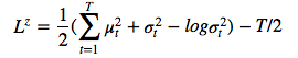 kl_terms = [0]*self.sequence_length for t in xrange(self.sequence_length): mu2 = tf.square(self.mu[t]) sigma2 = tf.square(self.sigma[t]) logsigma = self.logsigma[t] kl_terms[t] = 0.5 * tf.reduce_sum(mu2 + sigma2 - 2*logsigma, 1) - self.sequence_length*0.5 # each kl term is (1xminibatch) self.latent_loss = tf.reduce_mean(tf.add_n(kl_terms)) self.cost = self.generation_loss + self.latent_loss # Optimization optimizer = tf.train.AdamOptimizer(1e-3, beta1=0.5) grads = optimizer.compute_gradients(self.cost) for i,(g,v) in enumerate(grads): if g is not None: grads[i] = (tf.clip_by_norm(g,5),v) self.train_op = optimizer.apply_gradients(grads)